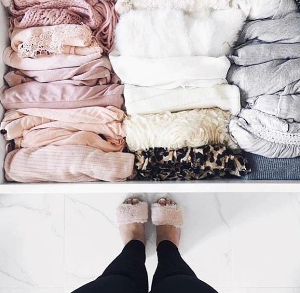 ¡Codifique por colores su ropa y sabrá qué artículos posee de un vistazo! (Además, facilita la creación de un cajón lleno de colores que despiertan alegría para ti). Foto de @sue_couture.